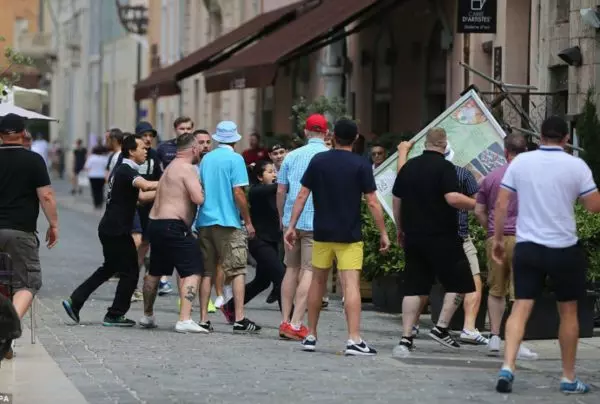The following is a photo of England fans in Marseille. There is little to suggest that there is any fighting going on here: