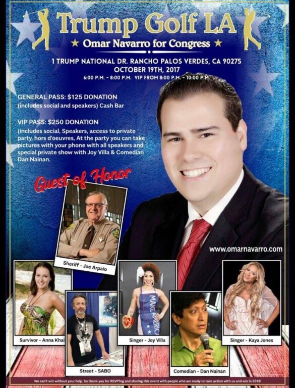 None the less, there was a gala fundraiser for Navarro. It was star-studded. Convicted felon and former Maricopa County Sheriff Joe Arpaio was an honored guest. Some contestant from Survivor was on the bill. There was a singer who has zero hits, but was recognized for wearing a MAGA dress during campaign events.