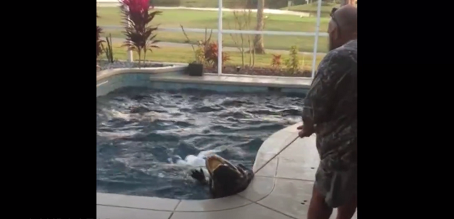 At first, Craig Lear had no idea what the large mass at the bottom of his pool was because of it’s pebble-stone floor. But upon closer inspection, a 300-pound alligator lay dormant on the pools bottom.